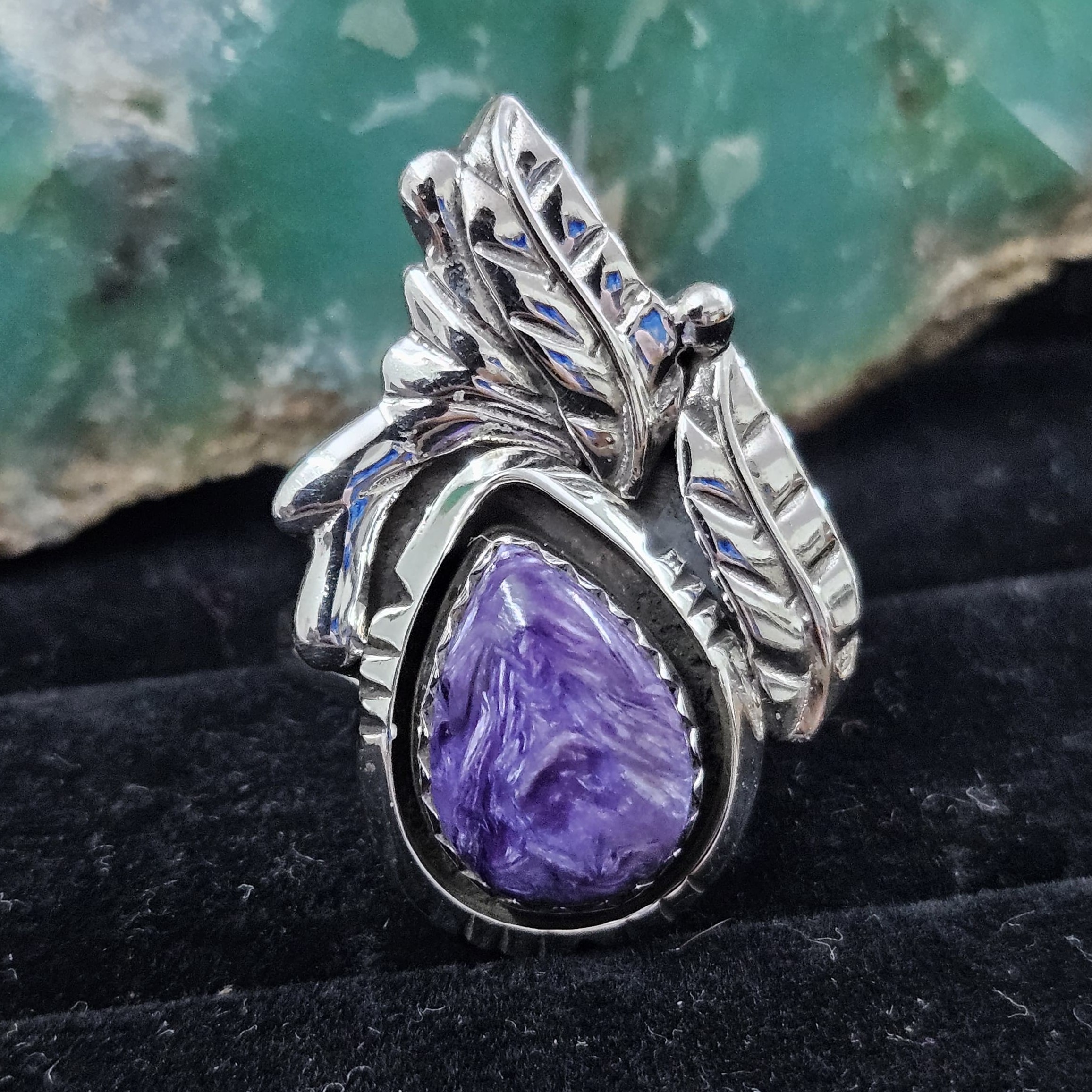Charoite Southwest Feather 925 Sterling Silver Ring (REXT70-9)