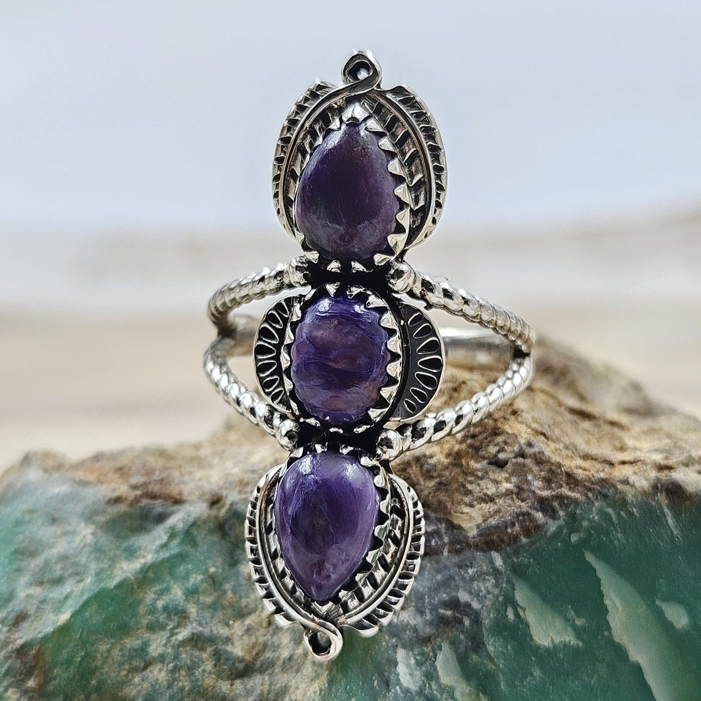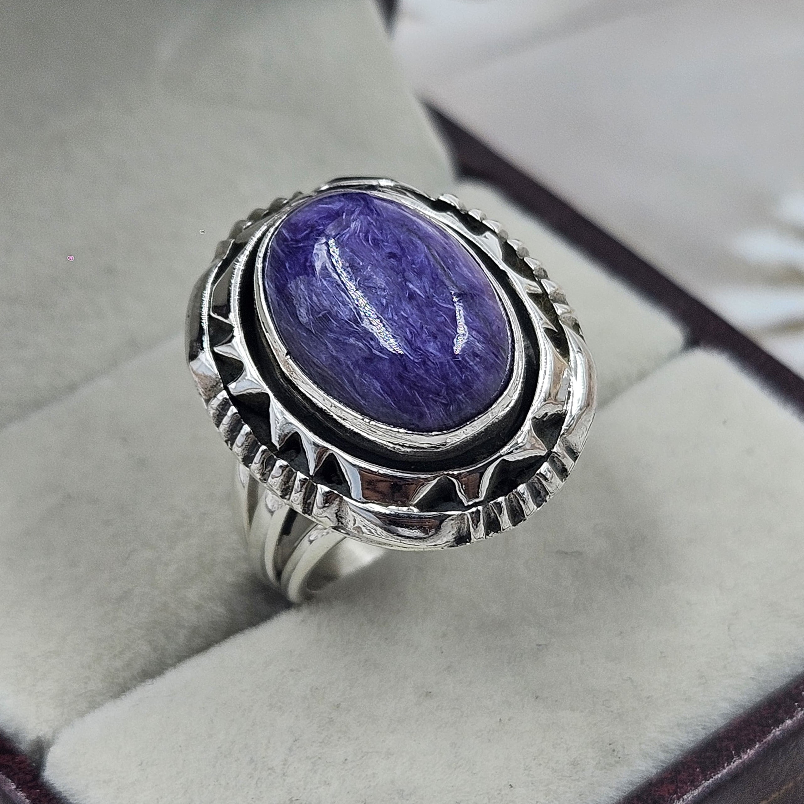 Charoite Southwest Style 925 Silver Ring (RS50-8)