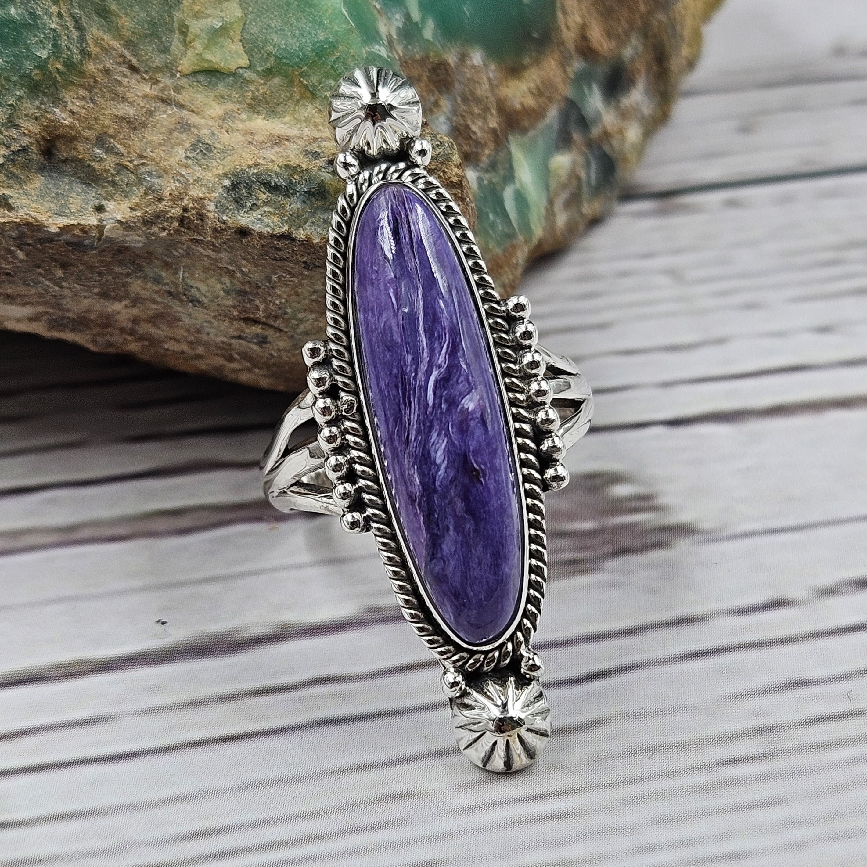 Charoite Southwest Style 925 Silver Ring (REXT4-2)